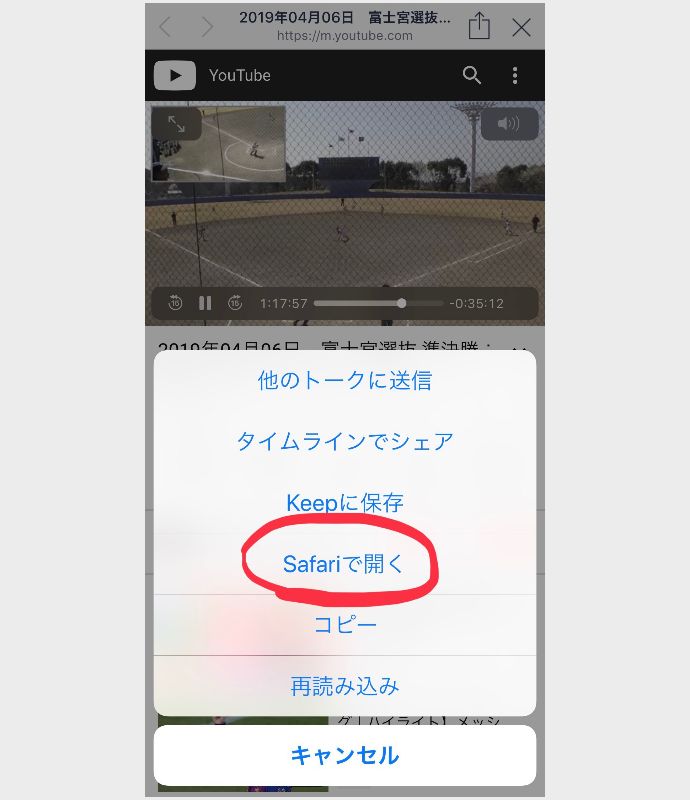 スマホの機種にもよりますがiPhoneの場合は、Safariで開くをタップします。